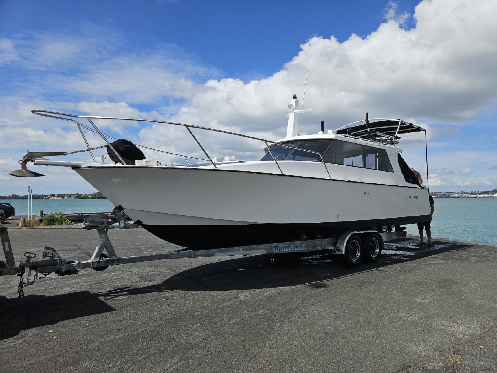 Very tidy 1996 Pelin Topaz 8.5 mtr weekender, twin 2008 Suzuki DF50 4-stroke outboards, just been fully serviced, 675 hrs, cruises 15 knts max 20 knts, 27 ltrs per hour using both motors, 200 ltr...…