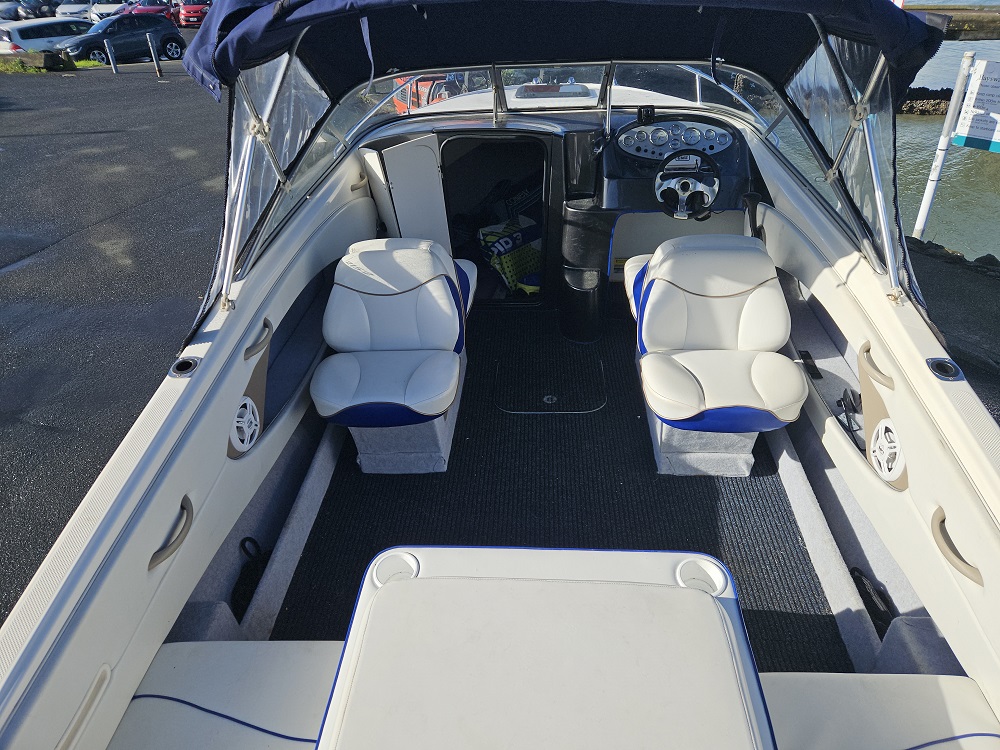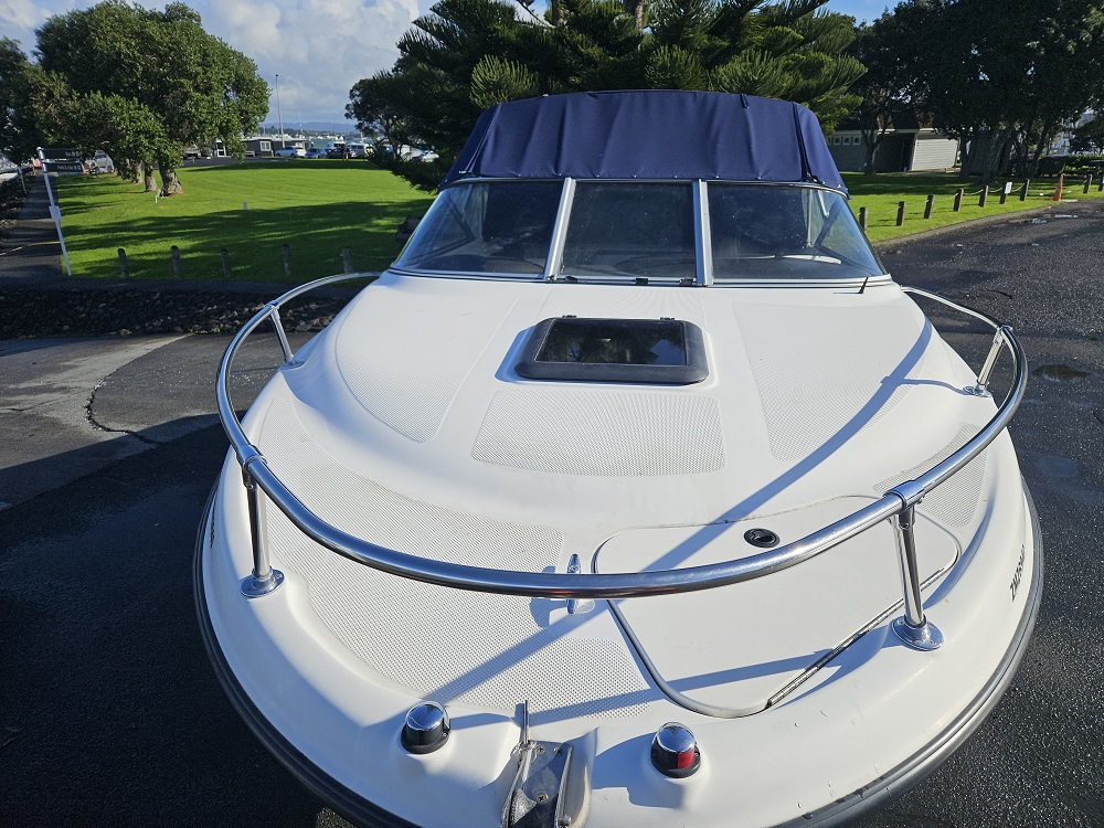 2003 Bayliner 2152 overnighter, 225 hp MPI 4-stroke Mercruiser, 373 hours, 4 blade stainless prop, 6 seater, sleeps 2 in cabin plus another 2 in cockpit on back to back fold down sleeper seats, full instrumentation including Lowrance Hook 535 ff/gps, vhf, stereo, full enclosure overnight canopy, full all over storage cover, walk through windscreen to bow, stainless bow rails, forward anchor locker, forward hatch, under seat storage, cup holders, rod holders, bait board, extended rear swim platform with stainless boarding ladder and ski tow ring. Comes on tandem galvanised disc braked trailer with spare wheel and park brake. Very nice set up with plenty of space and smooth performance. Now on sale, price reduced 2k.