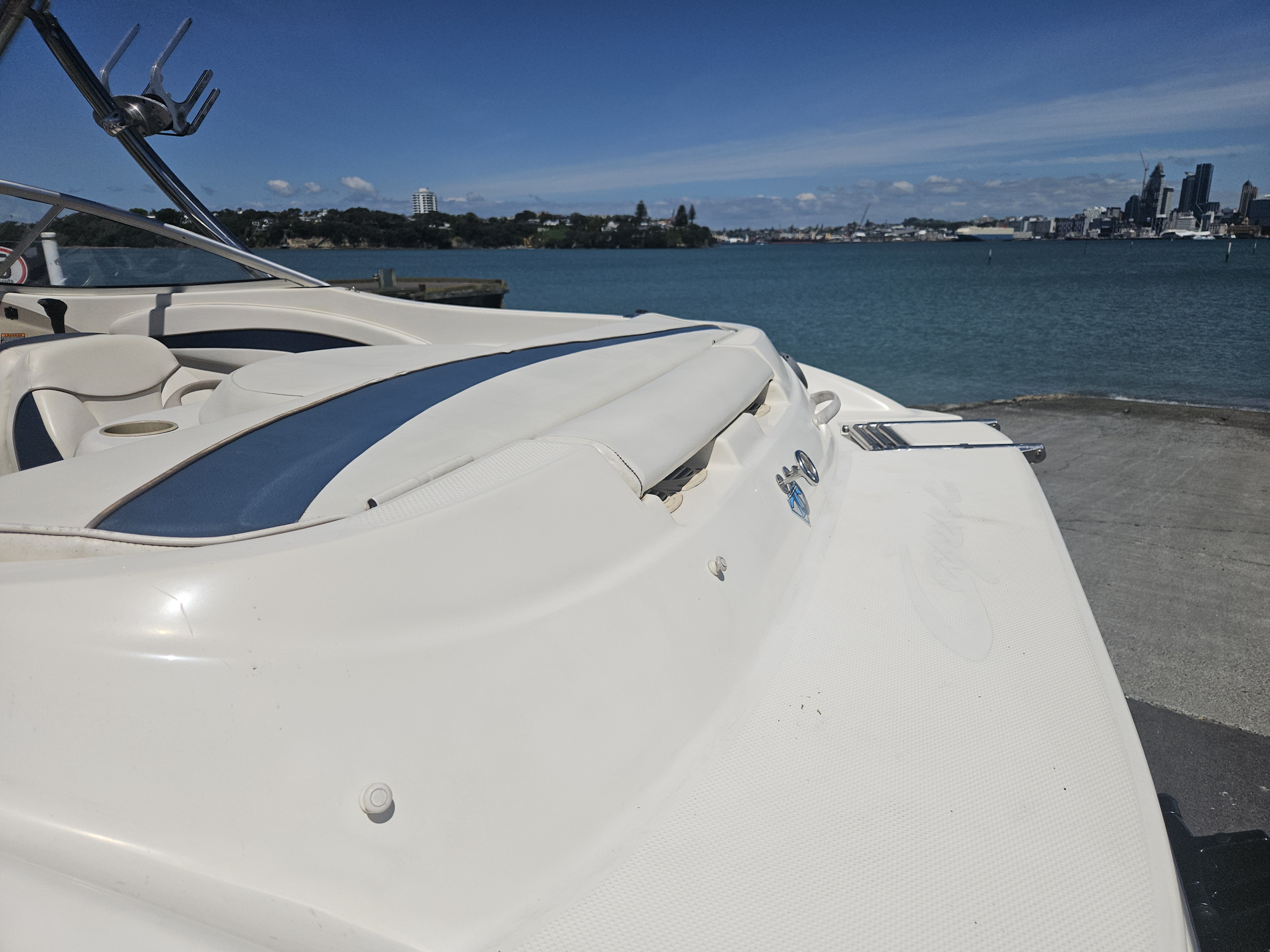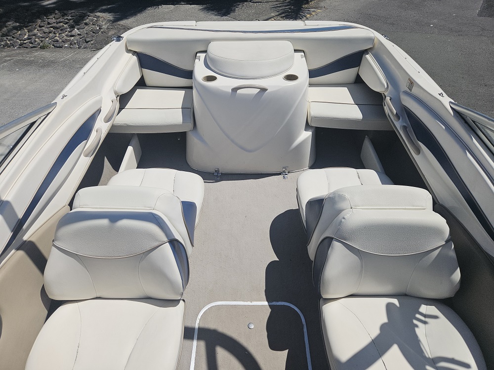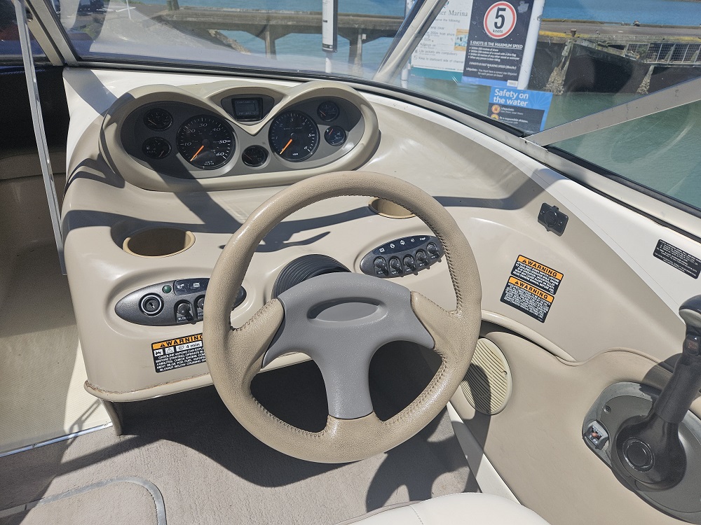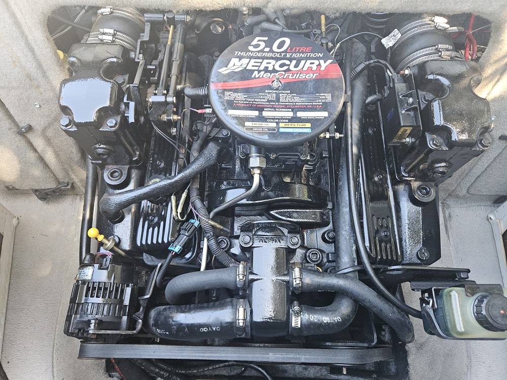 ****** SOLD ****** SOLD ******** Wakeboard ready 2002 Bayliner 195 sports bowrider, 220 hp 5ltr 4-stroke V8 Mercruiser, only 242 hrs, fully serviced, stainless 5 blade prop, X-Air stainless wakeboard tower with twin board racks, 8 seater, back to back fold down sleeper seats, rear seats remove for fishing and also lift to form rear sunlounger pad, full instrumentation, tilt steering, glove box, walk through windscreen to bow seats, underseat storage, underfloor storage locker, cup holders, bow cover, road cover, storage cover, integrated rear swim platform with stainless boarding ladder and ski tow ring. Comes on galvanised single axle trailer with regn and wof. Effortless smooth power with comfortable seating and smooth handling, ready to go for summer.