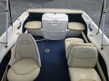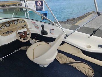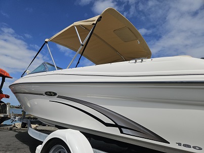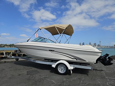 Beautiful 2004 Searay 180 sports bowrider, economical 135 hp 4-stroke Mercruiser, fully serviced including sternleg, 8 seater, fully carpeted, captains chair, back to back fold down sleeper seat, rear seats lift up to form sunlounger pad, full instrumentation, Garmin GPS, vhf, electric bilge pump, nav lights, walk through windscreen to bow seats, bow cover, canopy off windscreen as well as a bimini top sun shade , road cover, underfloor and seat storage, cup holders, integrated rear swim platform with stainless boarding ladder and ski tow ring. Comes on galvanised trailer with regn and wof. Very tidy boat all ready to go.