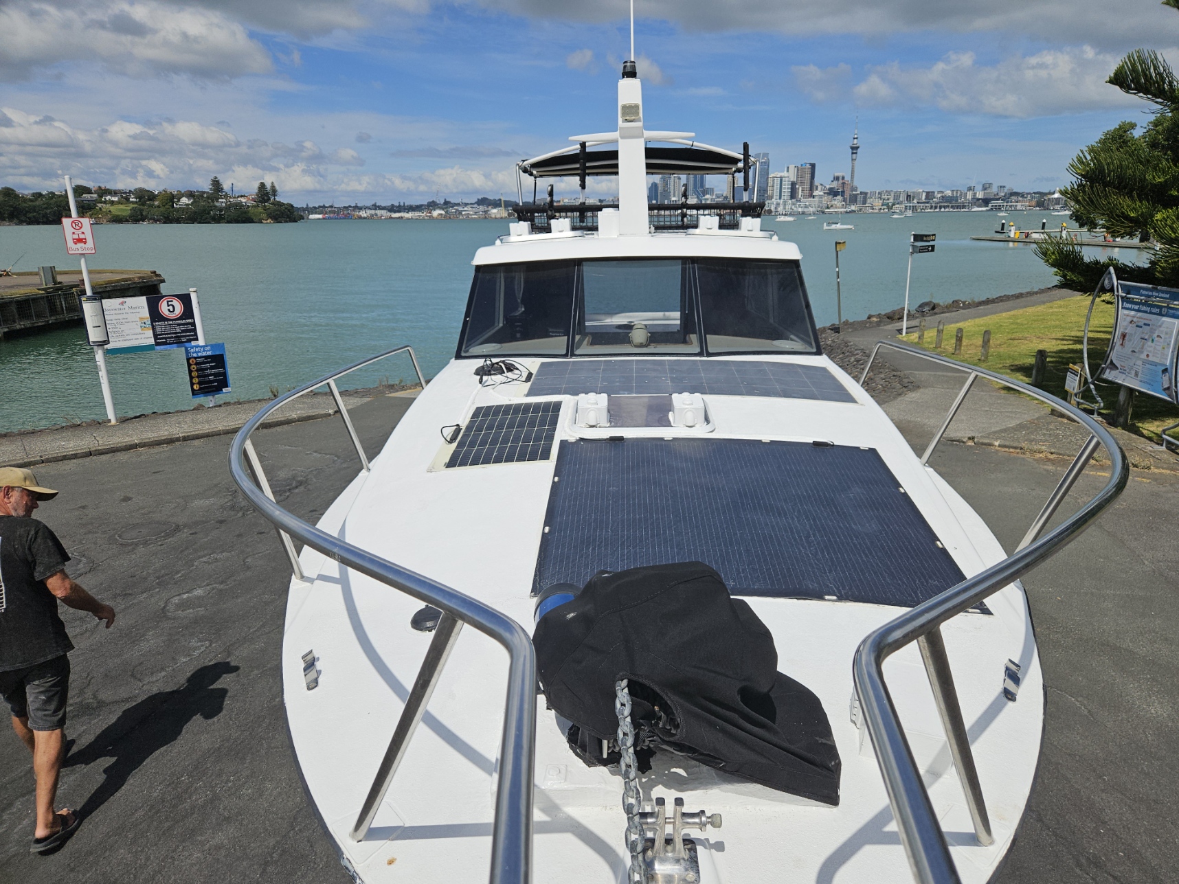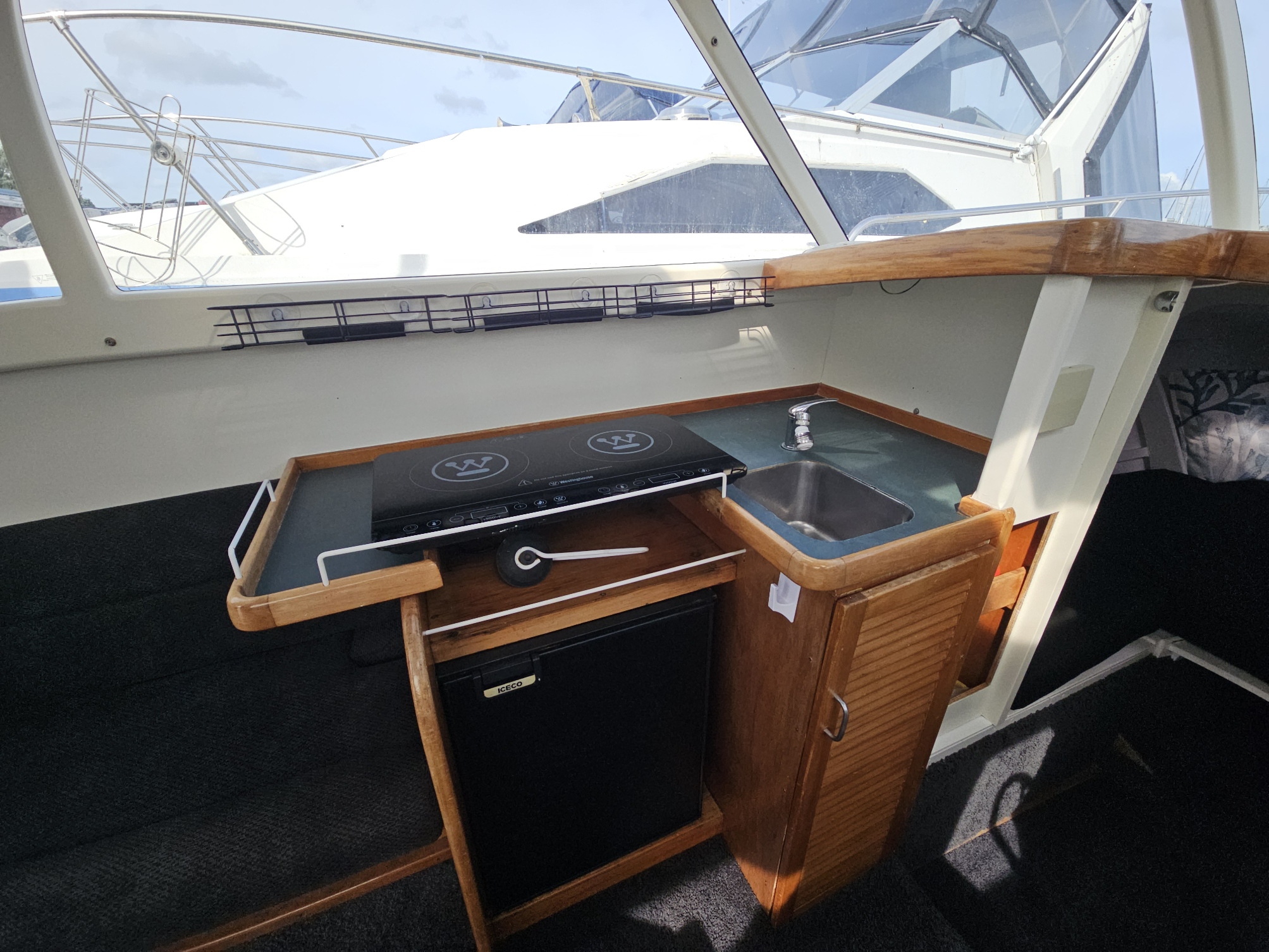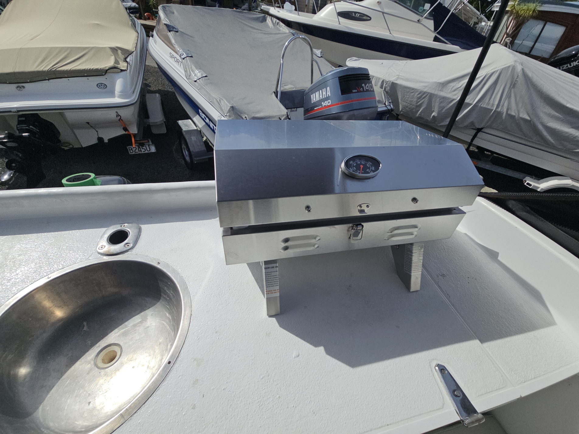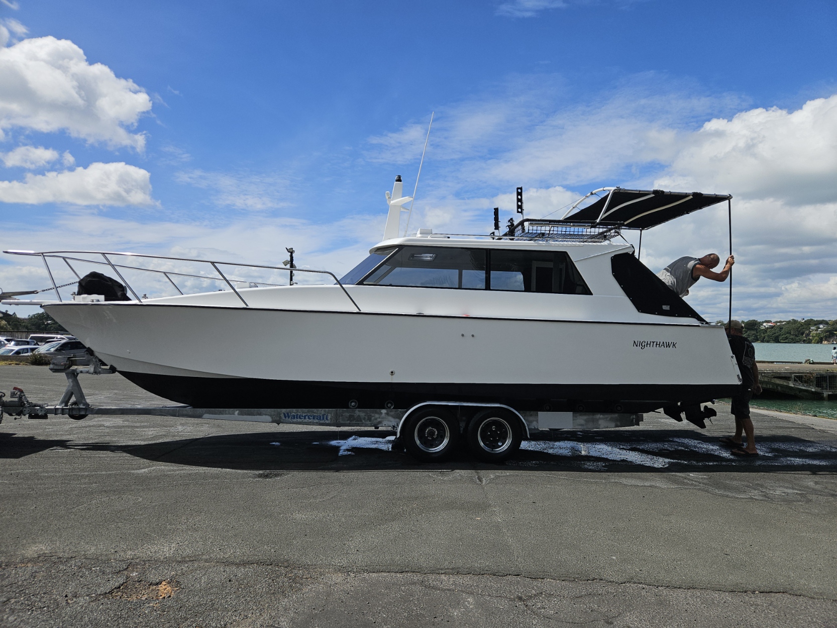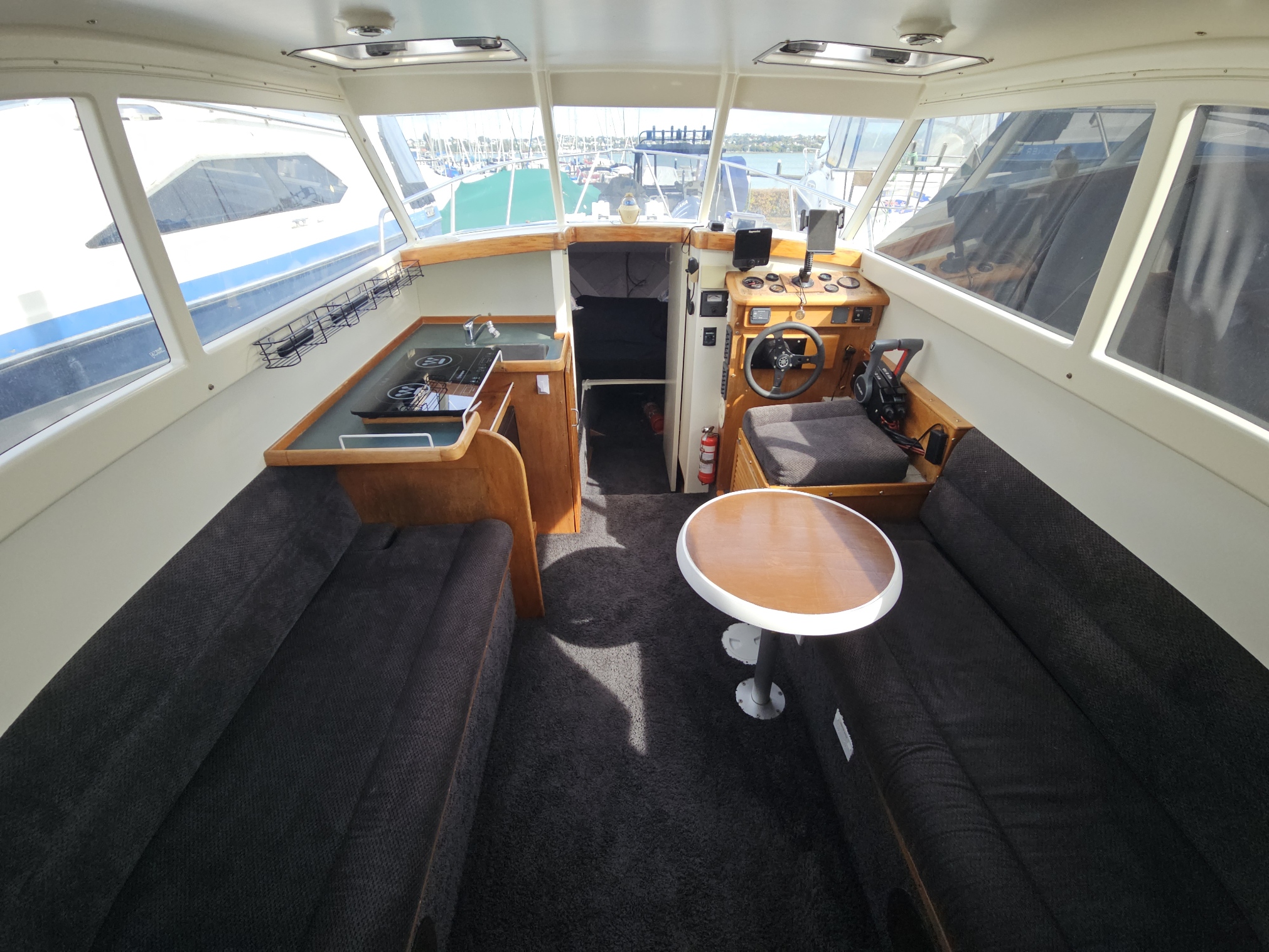 Very tidy 1996 Pelin Topaz 8.5 mtr weekender, twin 2008 Suzuki DF50 4-stroke outboards, just been fully serviced, 675 hrs, cruises 15 knts max 20 knts, 27 ltrs per hour using both motors, 200 ltr fuel tank, 100 ltr water tank, current e-wof, Maxwell electric drum winch, sleeps 4 in forward double berth and 2 singles, galley with sink, double electric induction cooktop, fridge, brand new gas bbq, 2000 watt inverter, whale hot water cylinder which runs off either shore power or engines while running, transom shower, separate toilet with macerator pump, all led lighting, new Rhino carpet throughout, new squabs upholstery, electric bilge pumps, new diesel heater, full instrumentation, Ray marine gps / fish finder, vhf, 3 x batteries with solar charging panels, custom bimini top sun shade, roof top storage cage, forward hatch, stainless bow rails. Very tidy boat that has been well looked after and maintained by current owner. Optional tandem launching trailer available for $2500 sold separately.